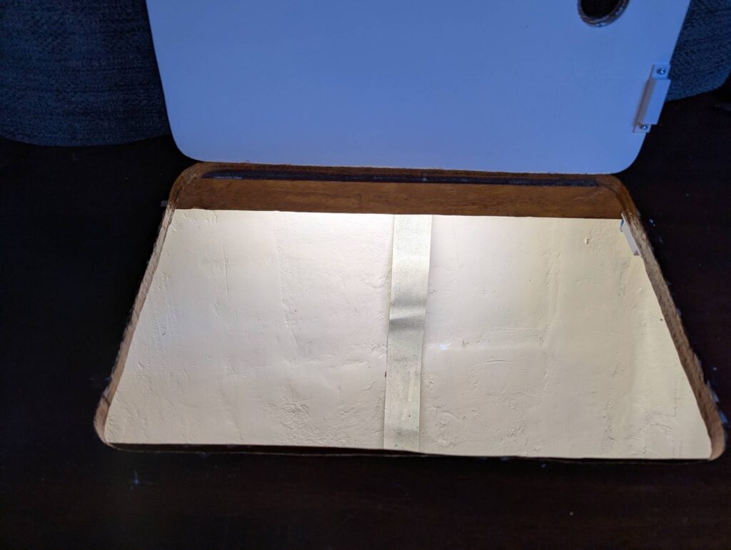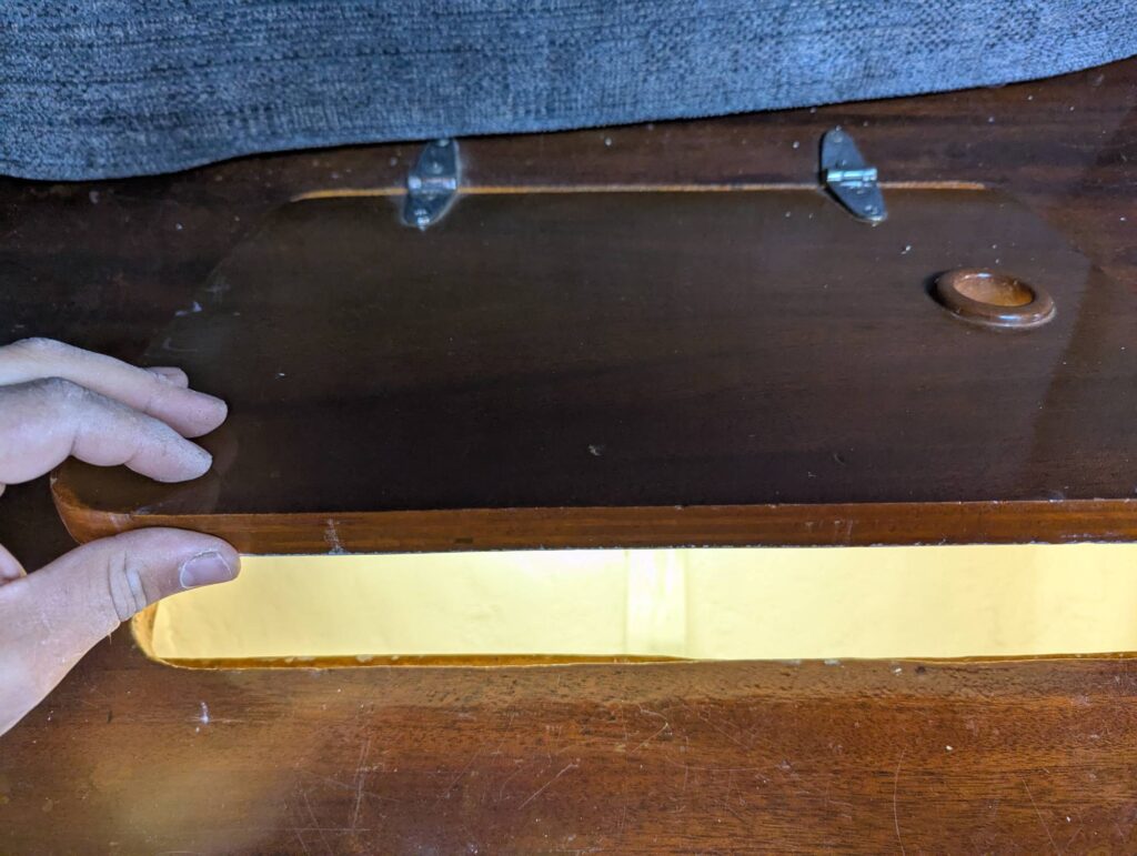 Our goal is to re-finish the interior of the hull in this area so that it is smooth, at least, as smooth as we can get it without tearing out the settee. From there we’ll apply a fresh coat of white bilge paint to protect the interior of the hull from any spills that may occur. Finally, we’ll install soft white LED strip lights that illuminate the storage space when the hatch is opened.