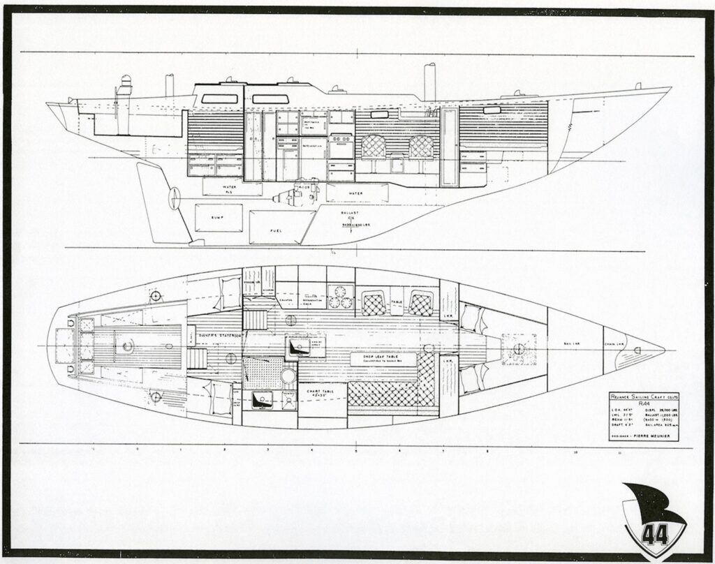 Unlike many boats of the era, the Reliance 44 is not known to suffer from delamination issues. This is attributed to Meunier being one of the first builders to utilize temperature and humidity control during layup, a practice that set a high standard for quality.